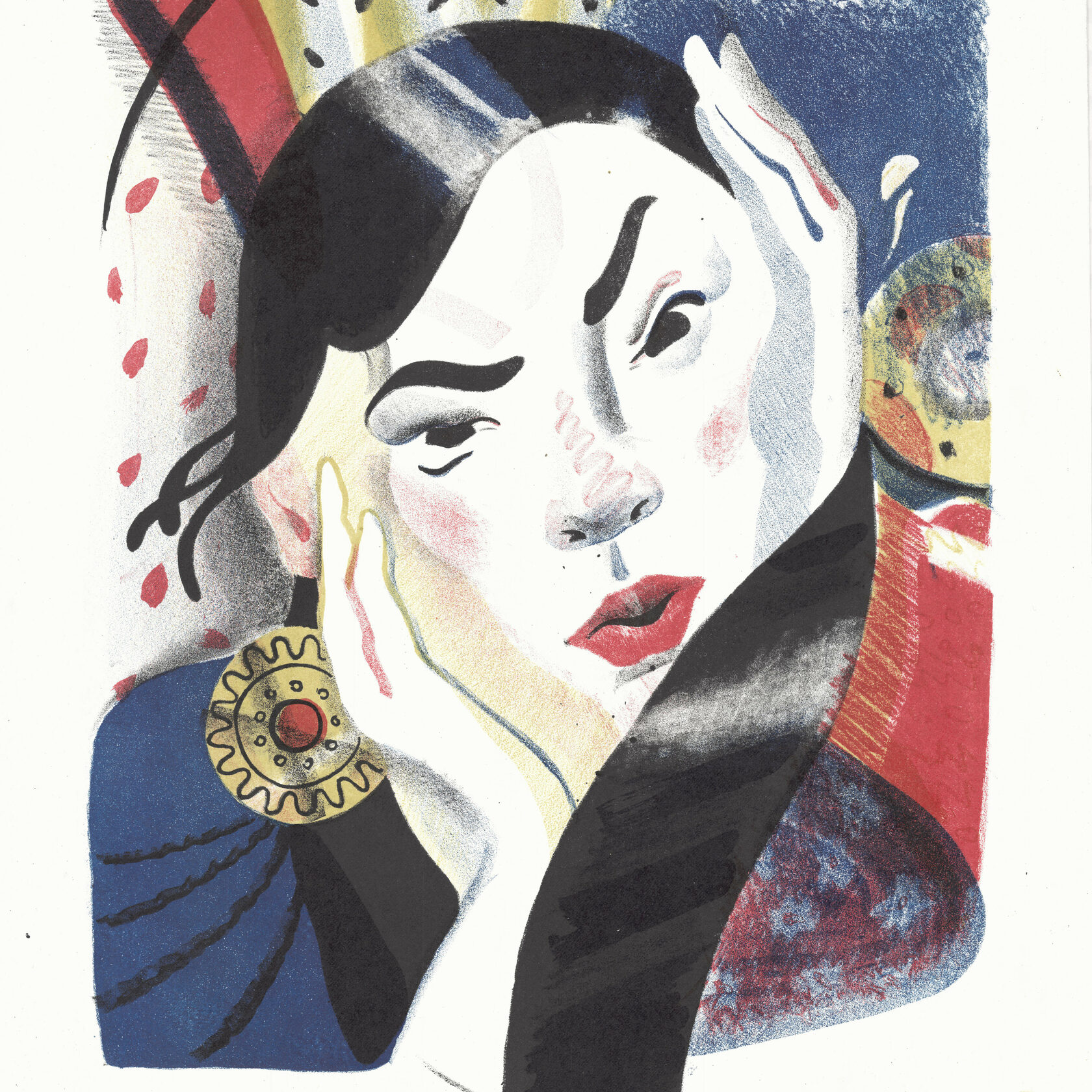 Эксцентричный портрет яркой девушки. У каждого человека бывают состояния, когда кажется, что все по плечу и можно свернуть горы маленьким пальчиком левой ноги, и в такие моменты нет полутонов и оттенков, только сочные, лаконичные пятна. Я пытался передать дикую энергию, исходящую от человека, буйный нрав и любовь к свободе! Это скорее некий плакатный сюжет, отсылающий нас к советским художественным решениям 70-х годов. Эмоции через край, нервный пучок творческой энергии - вот о чем эта работа!